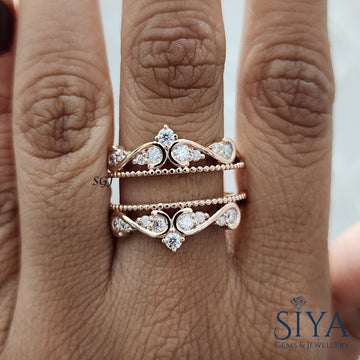 Vintage-Style Contour Solitaire Enhancer Diamond Ring Moissanite Engagement Ring 14K Gold Ring Round Solitaire Double Curved Stacking Band