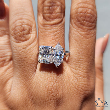 Two Stone Marquise and Radiant Cut Moissanite Ring Toi Et Moi Engagement Ring Wedding Ring 14K Solid White Gold Ring Anniversary Gifts.