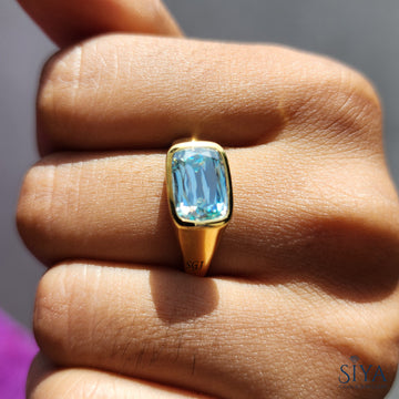 Cyan Blue Criss Cut Moissanite Ring Cushion Cut Engagement Ring Solitaire Signet Ring Midcentury Modern Ring Criss Cut Cushion Wedding Ring