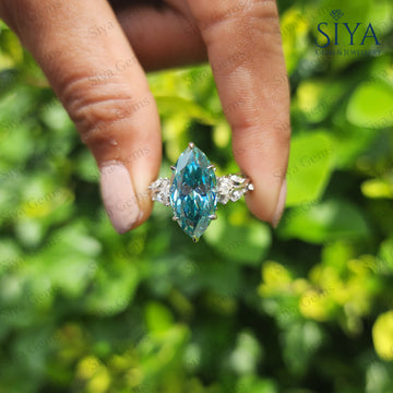 Cyan Blue Floral Marquise Cut Moissanite Engagement Ring Vintage 14K Gold Moissanite Diamond Wedding Ring Nature Inspire Ring For Women