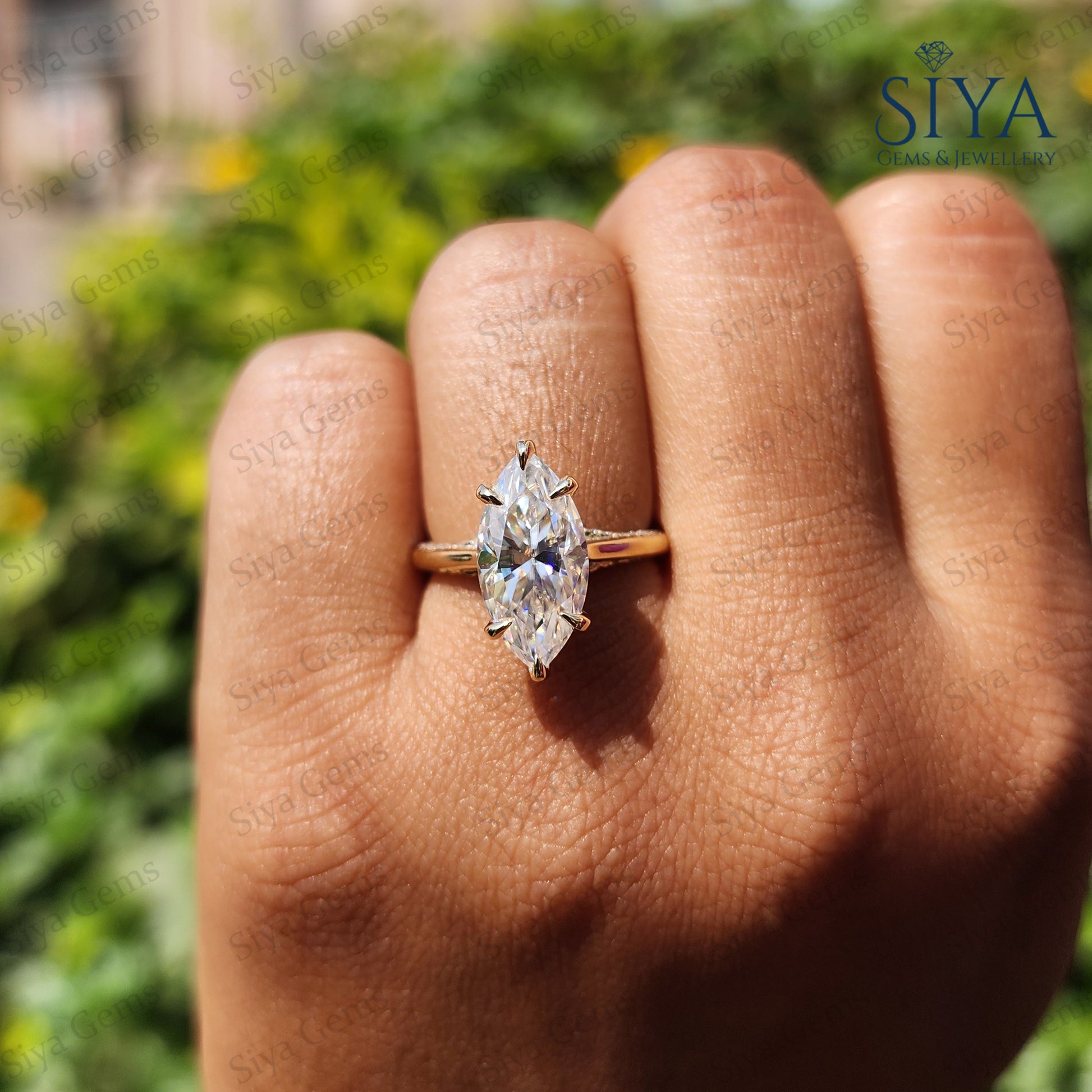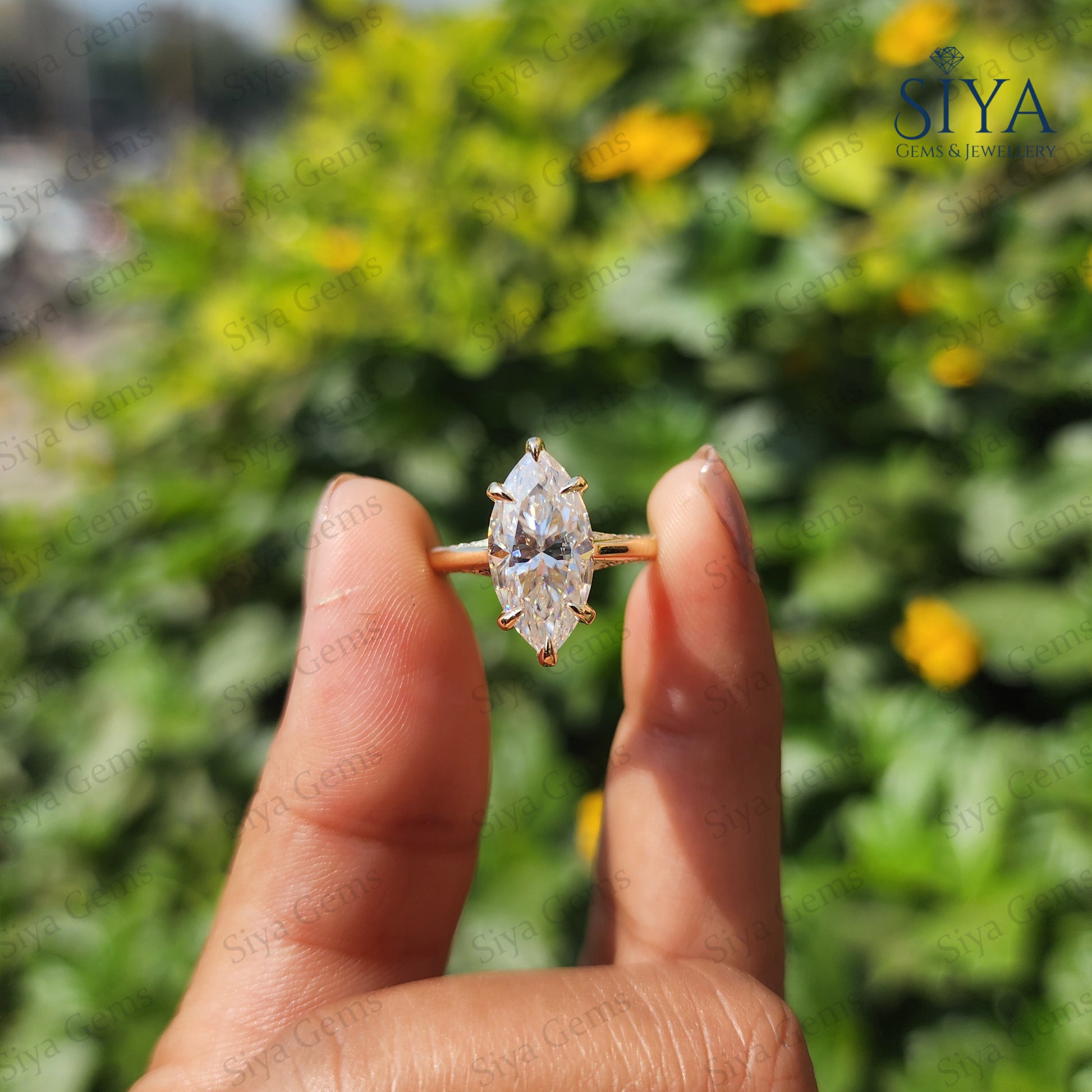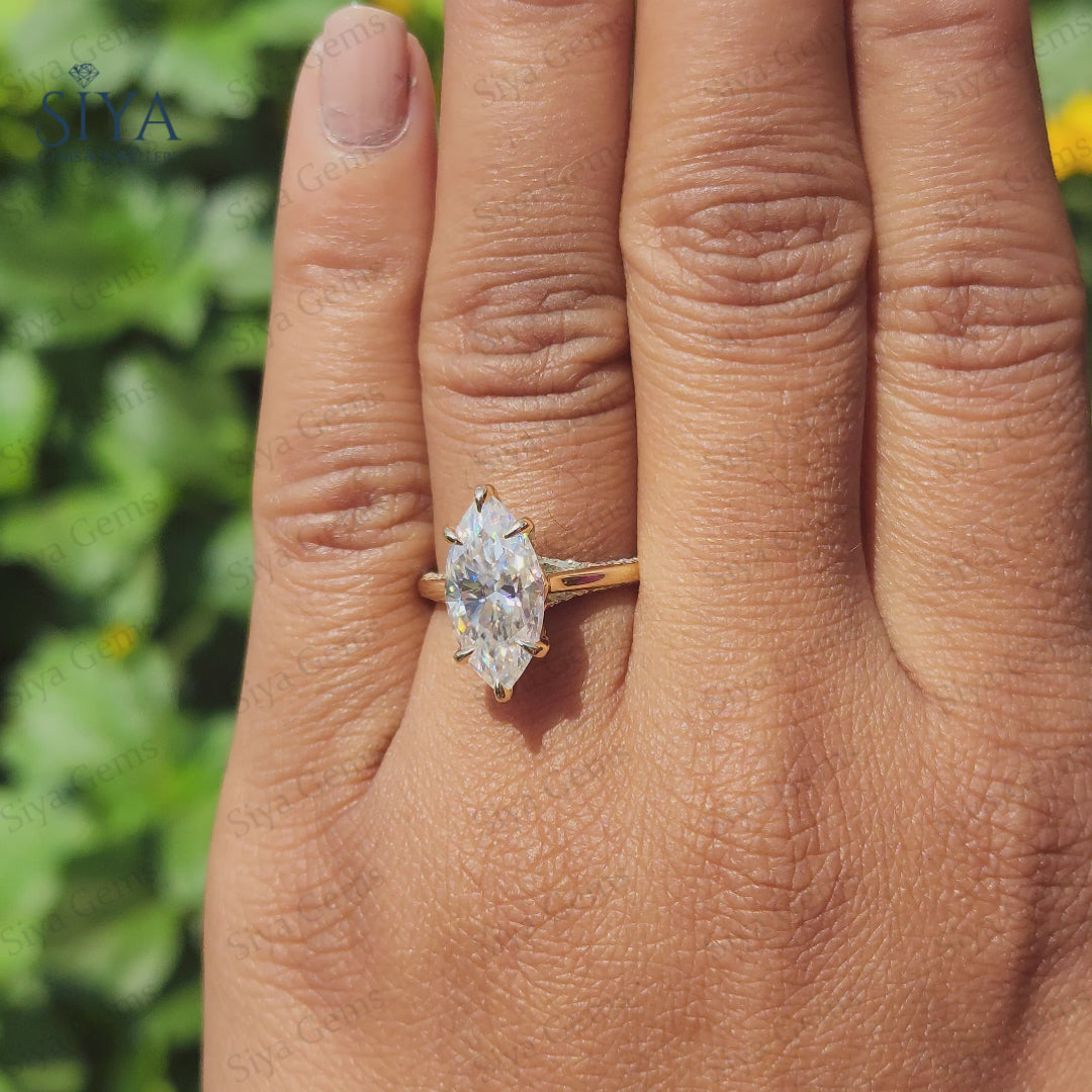 3CT Marquise Moissanite Engagement Ring 14K Gold Tulip Setting Wedding Ring for Her Anniversary Ring Unique Proposal Ring Handmade Jewelry