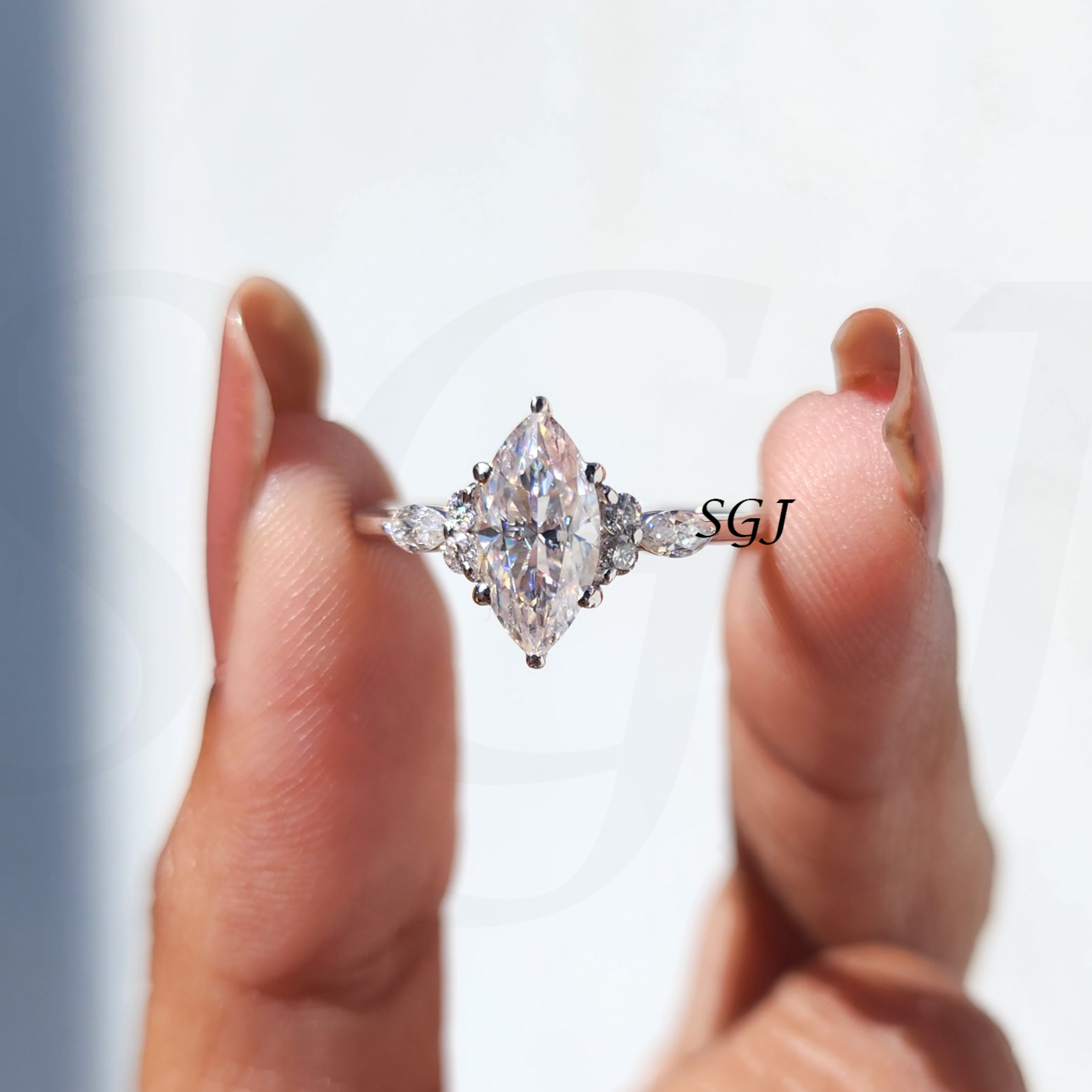 Elegant Marquise Lab Grown Diamond Cluster Engagement Ring
